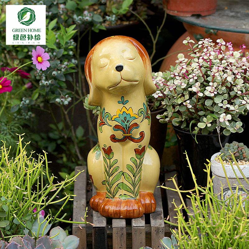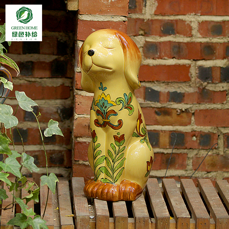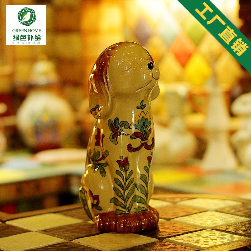 Mexican Mediterranean hand painted ceramic germinated dog hawkenware