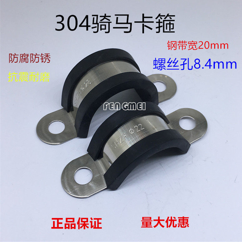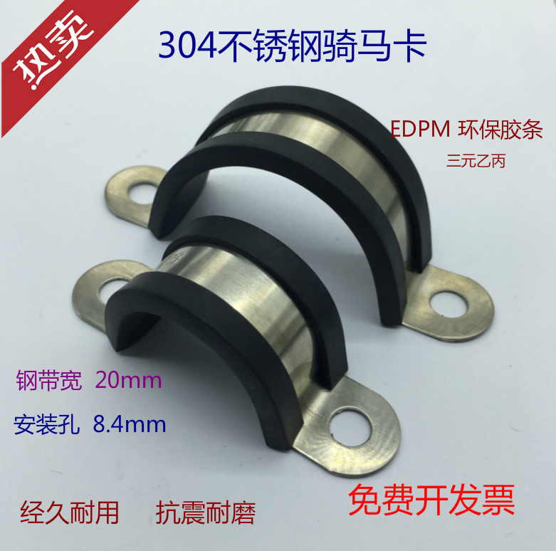 304 stainless steel horseback riding card U-shaped card with rubber strip clamp horseback riding card with rubber strip tube card tube clip width 20 holes 8 4