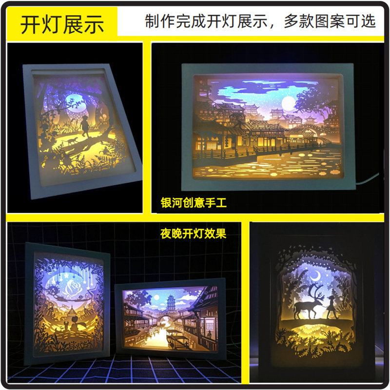 Light and shadow paper carving lamp creative DIIY bedroom stereo decoration small night table lamp box hand making material gifts