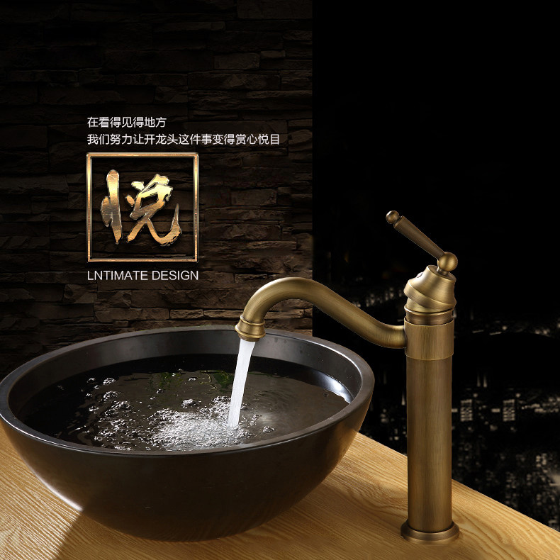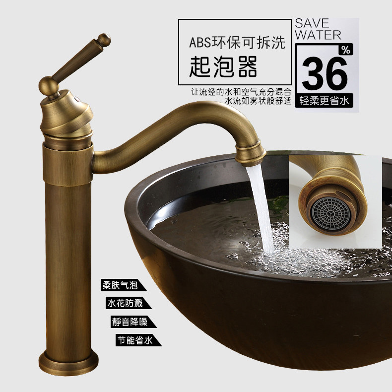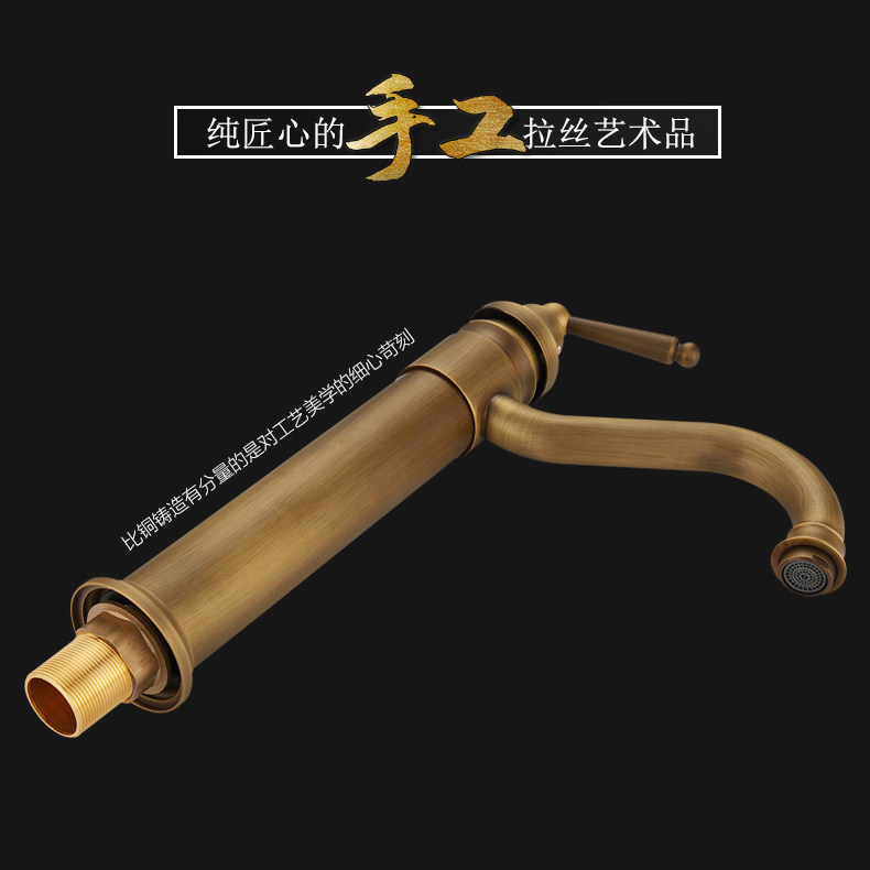 Full copper European-style antique tap retro plus high rotatable single-hole face basin tap hot and cold