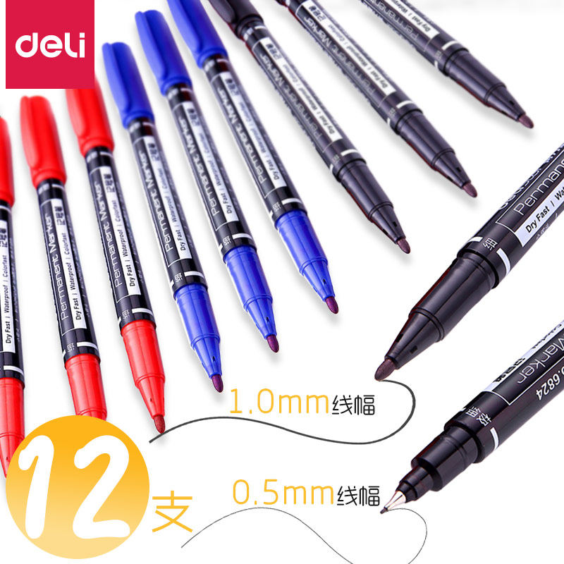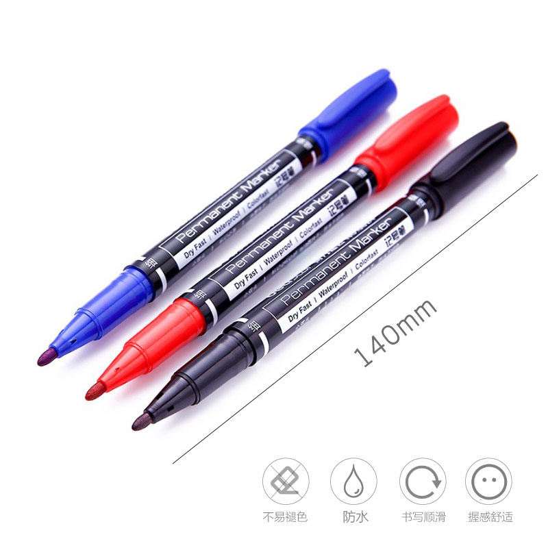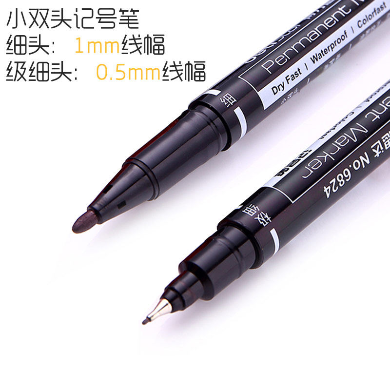 Small double head mark pen black Mark pen red and blue painting oil pen hook pen pen and pen wiped on Mark ditch thin head speed dry water depiction can not be wiped