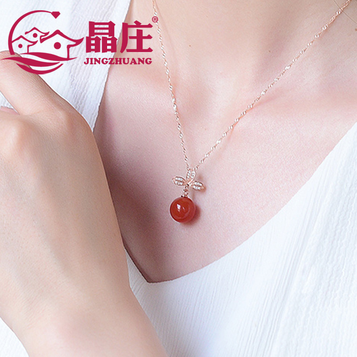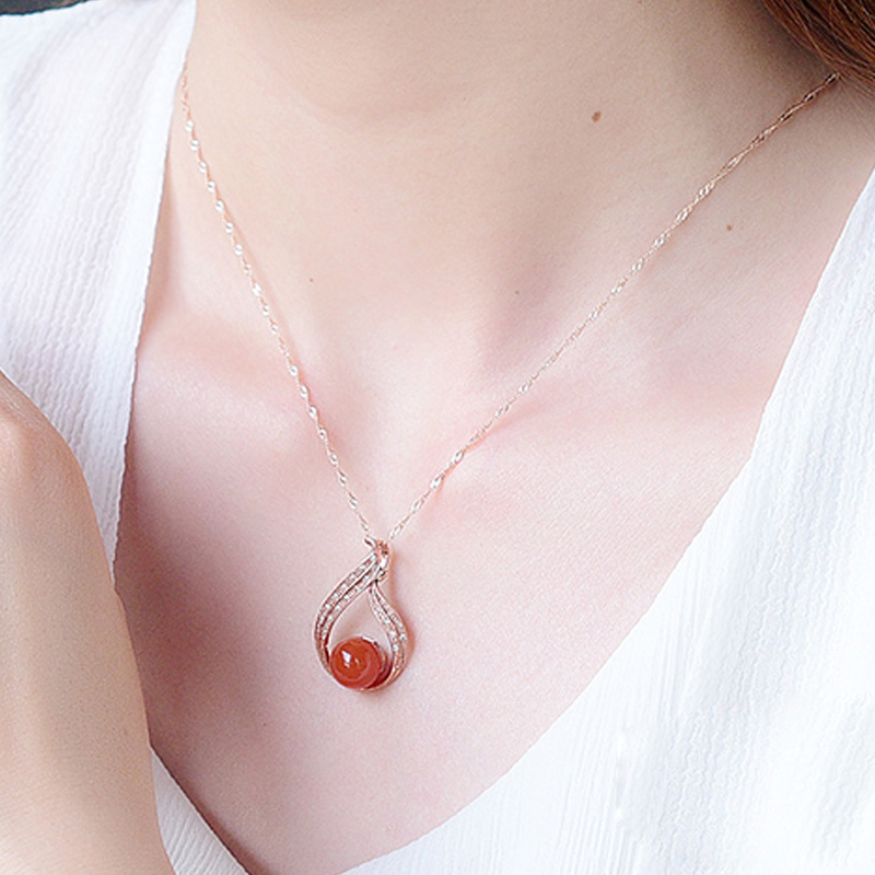 New natural southern red agate necklace clover pendant s925 silver rose gold birth year to send mother necklace