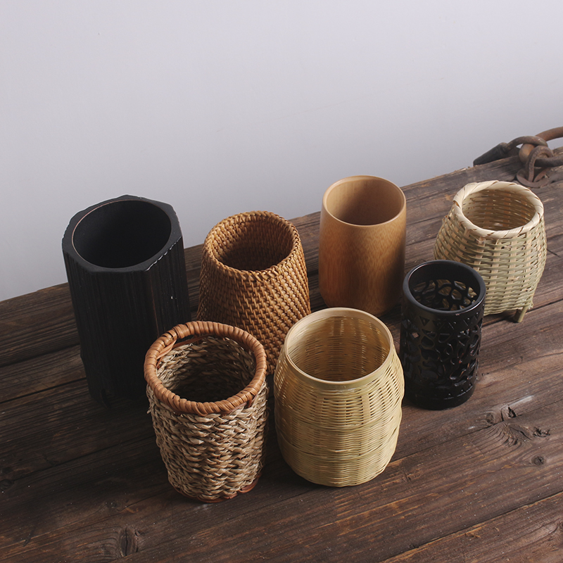 Rattan pen holder creative bamboo tea ceremony gentleman accessories storage small basket small basket straw pen bucket small fresh pastoral style