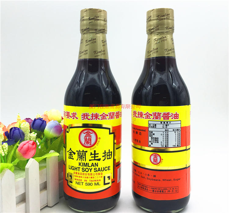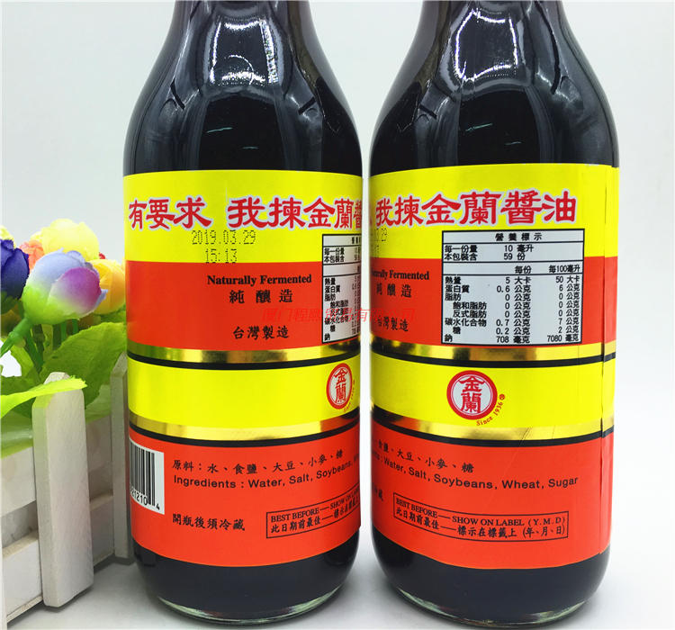 Taiwan imports Jin Lansheng to draw 590ml gold and Lan soy sauce raw for a cold and mixed raw sauce glass bottle pure brew