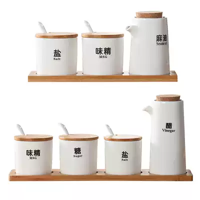 Japanese ceramic seasoning bottle jar seasoning box set household kitchen salt jar soy sauce bottle chili jar vinegar bottle seasoning tank