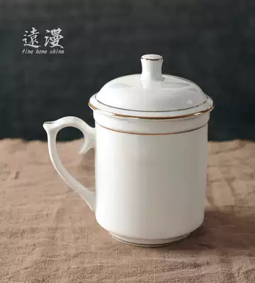Business Gift Cup Bone Porcelain Phnom Penh Conference Cup Office Cup Ceramic Cover Cup Meeting Water Cup Custom logo Printing