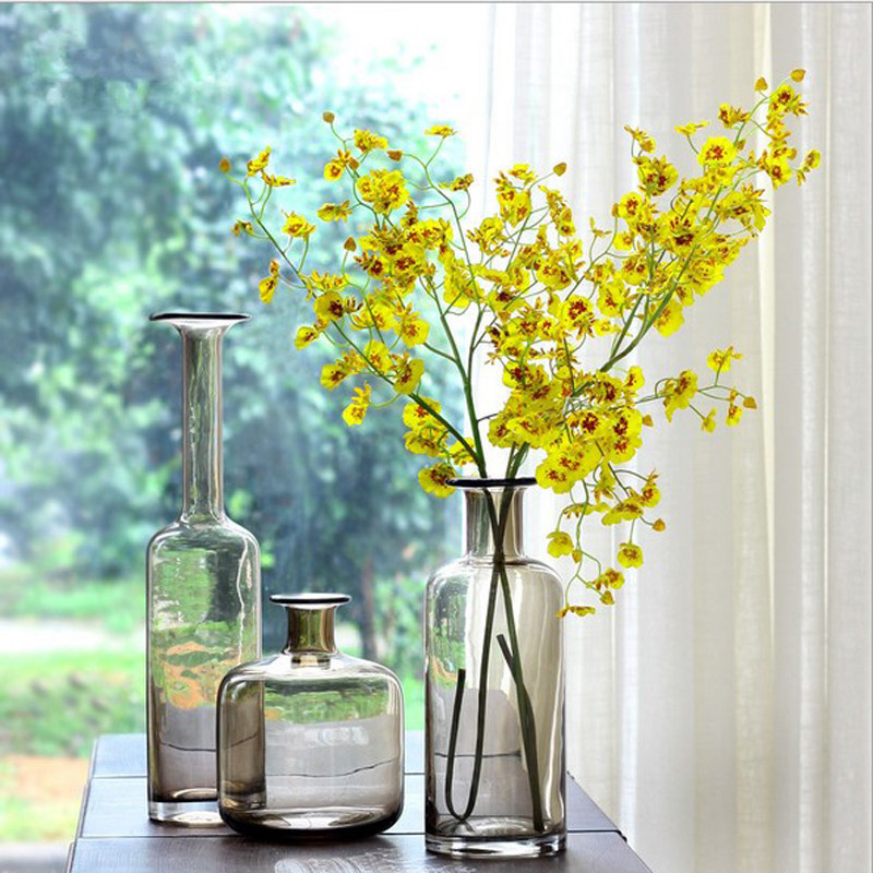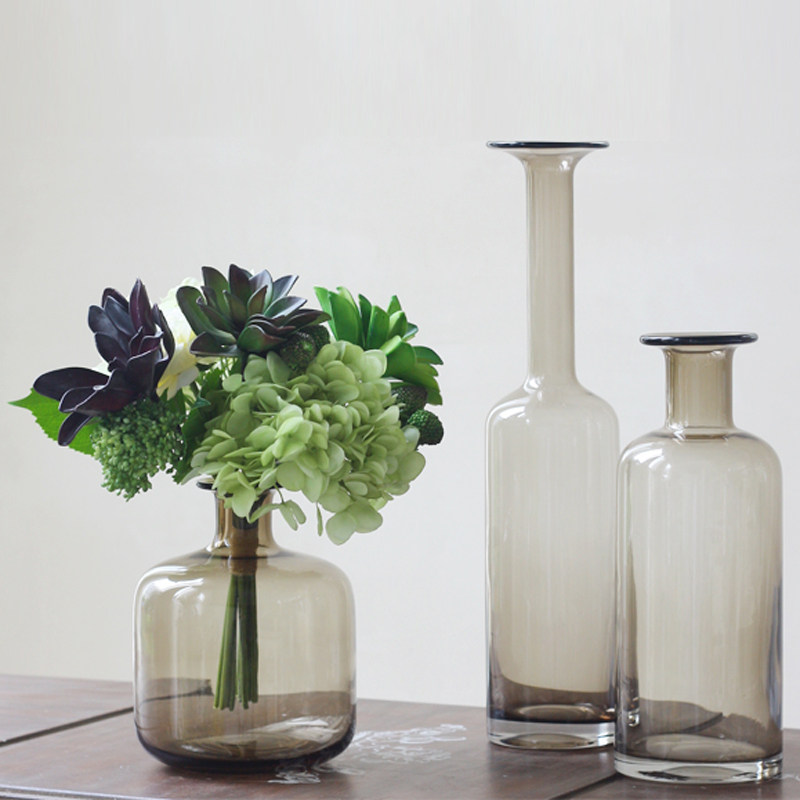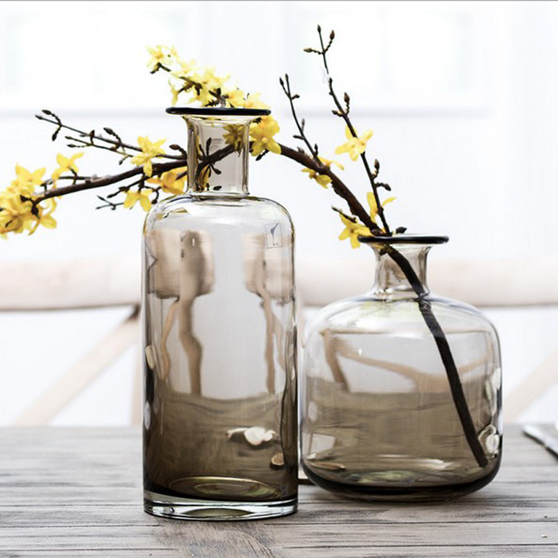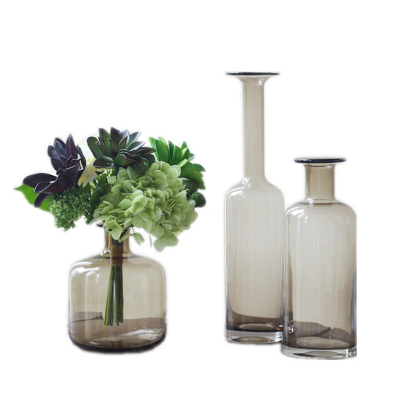 Nordic transparent long-neck glass vase firegray tea-colored American creative living room dining room household swing-in flowers