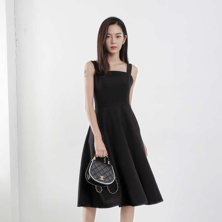 Clear sleeveless temperament small black skirt Heben long skirt slim hanger medium long high waist dress female