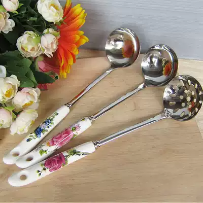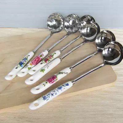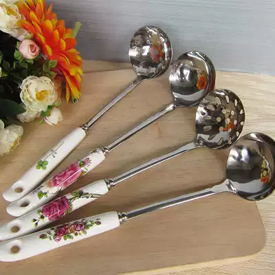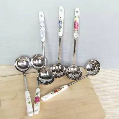 Buy 2 get 1 pot porridge spoon stainless steel small soup spoon hot pot colander thick Spoon long handle soup shell home