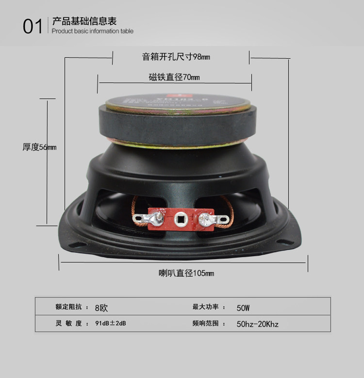 8 Euro 50W pure medium bass speaker 4 inch speaker unit full range speaker 4 inch speaker