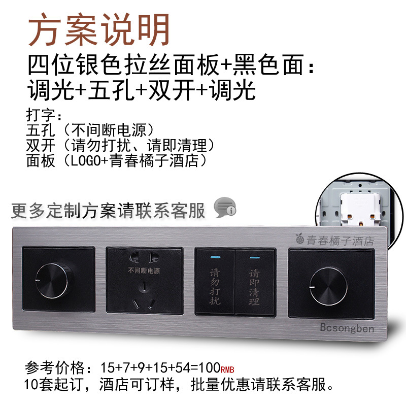 High-end Wire Drawing Hotel Switch Guesthouse Bed Head Cabinet Control Switch Socket 86 Type Tandem Switch Panel