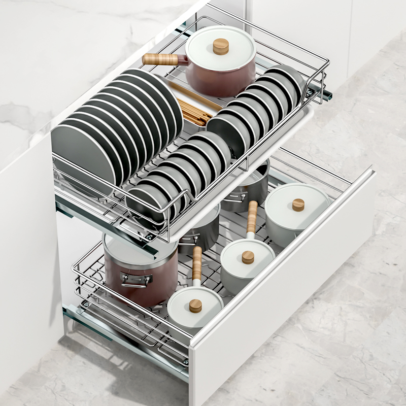 Sakura pull basket kitchen cabinet bowl basket double drawer type 304 stainless steel seasoning basket seasoning storage rack dishes