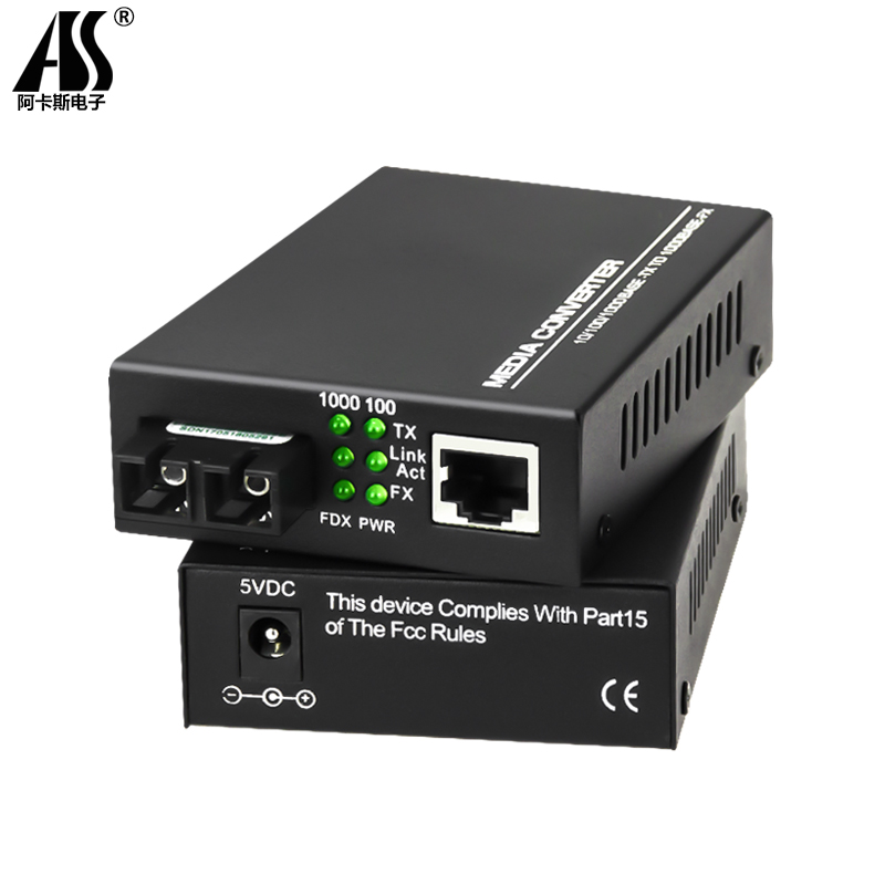 Gigabit single-mode dual-fiber optical transceiver A pair of optical brazing extender photoelectric converter 1 optical 1 electric 4 electric 8 network video surveillance single fiber SC port 20KM transmission built-in power supply Akas