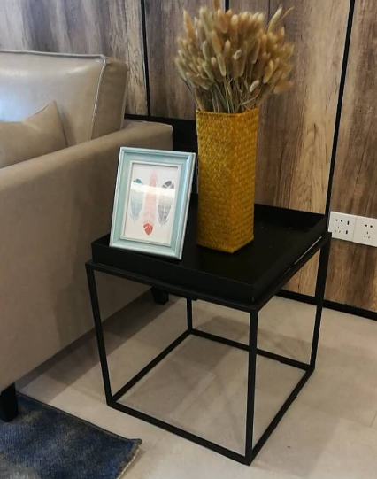 Modern minimalist sofa entrusted with square combined small tea table living-room with movable dining cabinet edge a few corners of the shelf