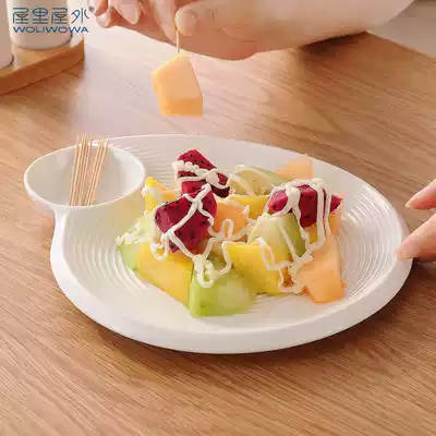 Simple tableware household dumpling plate drain ceramic dumpling plate round microwave oven steaming plate fruit plate