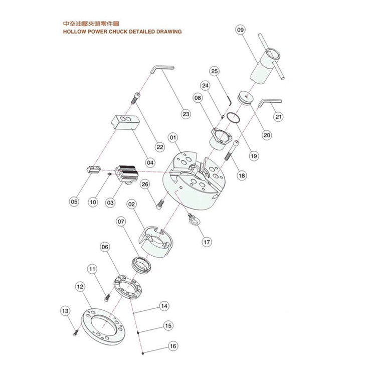 Taiwan standard hollow four-claw hydraulic collet oil pressure power collet high-precision collet 6 inch 8 inch 10 inch steel body