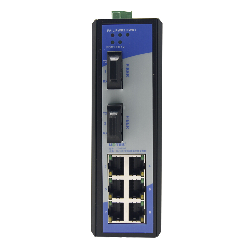 Yutai 2 optical 6 electric industrial network optical fiber switch 100 mega Ethernet transceiver UT-62206