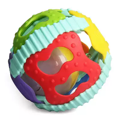 Infant soft glue hand grab ball toy grasping exercise jingle hole ball rattle toy 0-1 year old baby puzzle