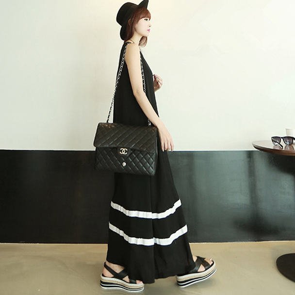 Modale Splice Crash Color Harness Vest Long Skirt Woman Summer Loose Black Sleeveless Large Pendulum Pendant A Character Dress