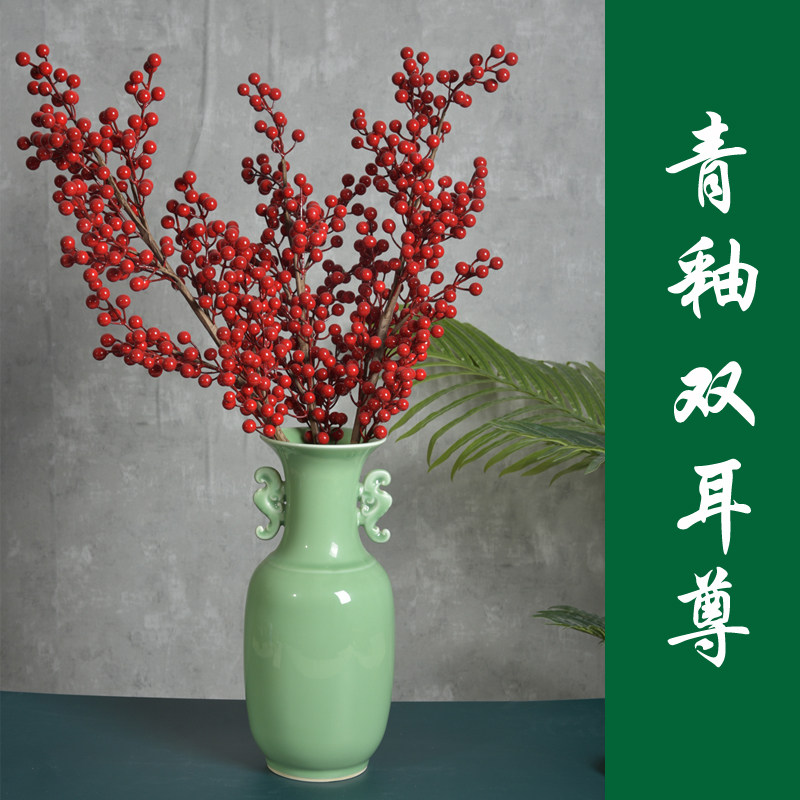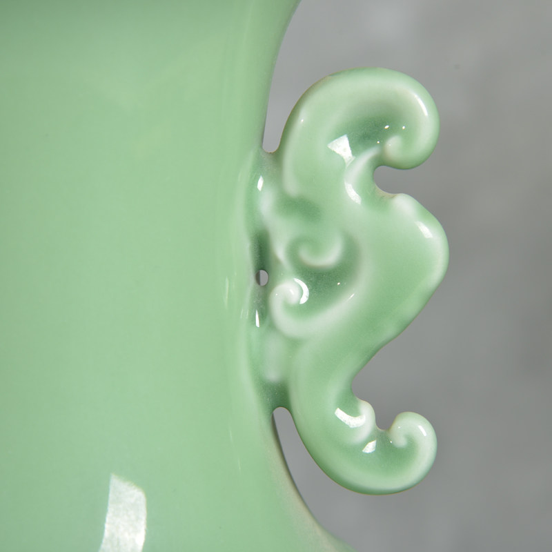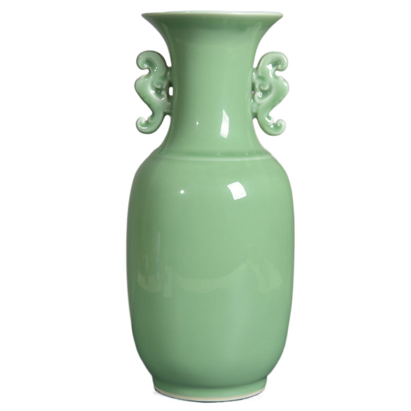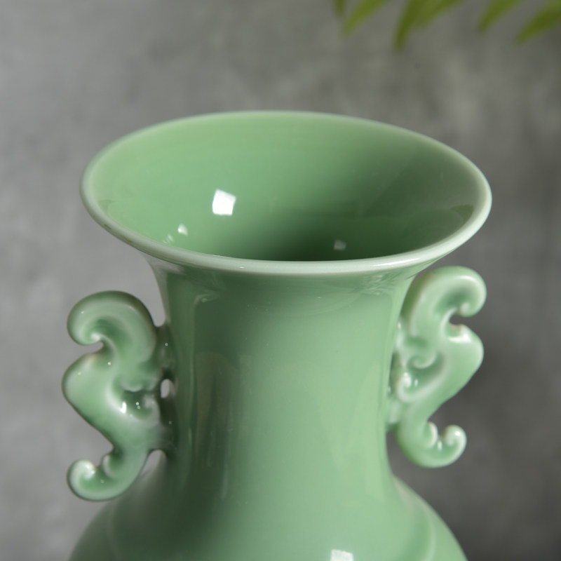 Retro Artisanal Dragon Springs Green Porcelain Vase Zen of Vase Living Room Pendulum Pieces Drying Flowers Large vase Vase Ceramic Binaural