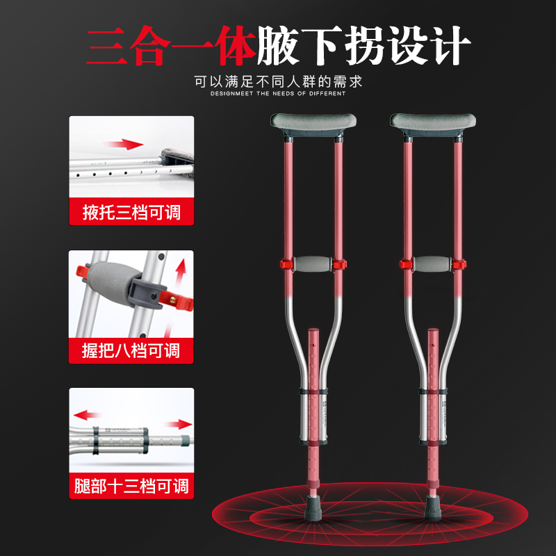 Aluminum alloy crutch Axillary Walking double inflection walker Walking Aids Walker for the Elderly People with Disabilities Walking Stick for the Elderly