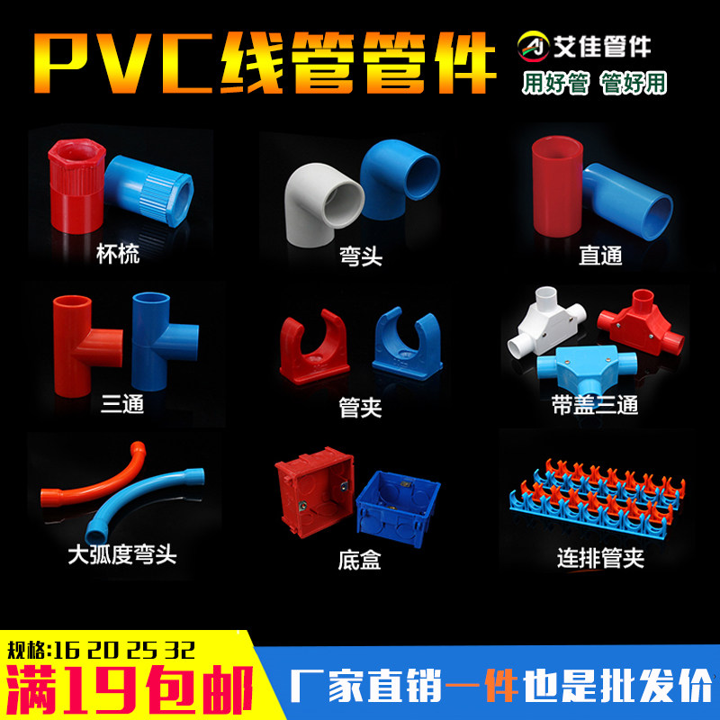 Electrician pipe PVC line pipe fittings 4 minutes 20 6 minutes 25 32 walk wire pipe threading housekeeping casing plastic pipe