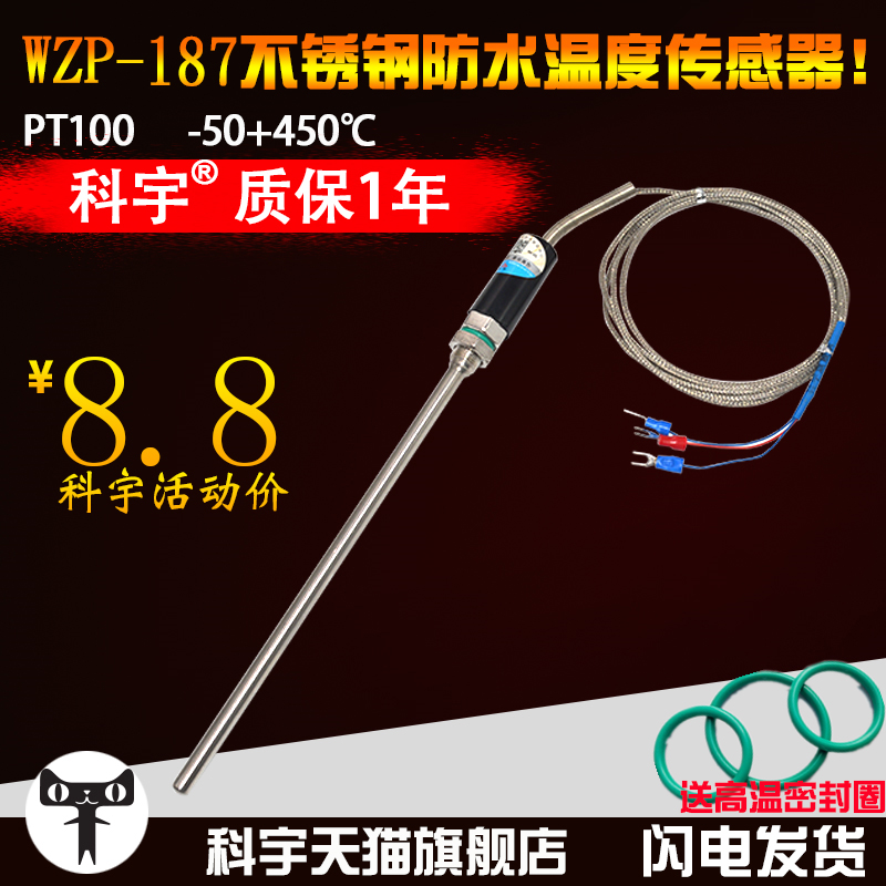 WZP-187 stainless steel waterproof temperature sensor monitor Pt100 platinum heat resistance KE thermocouple catch-up bar
