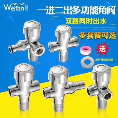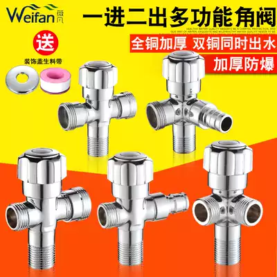One in two out copper 4 points three-way angle valve thickened multifunctional washing machine triangle valve check valve double water outlet