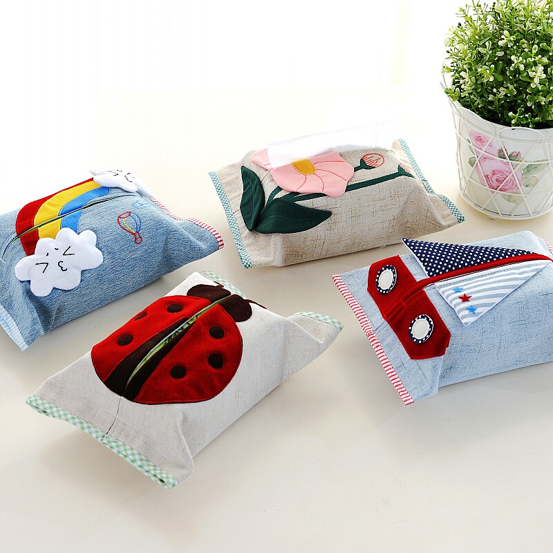 Sanitary paper box car can hang dressing room cotton linen fabric handmade tissue box dining room living room baby tissue storage box