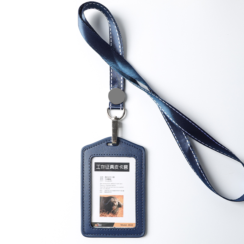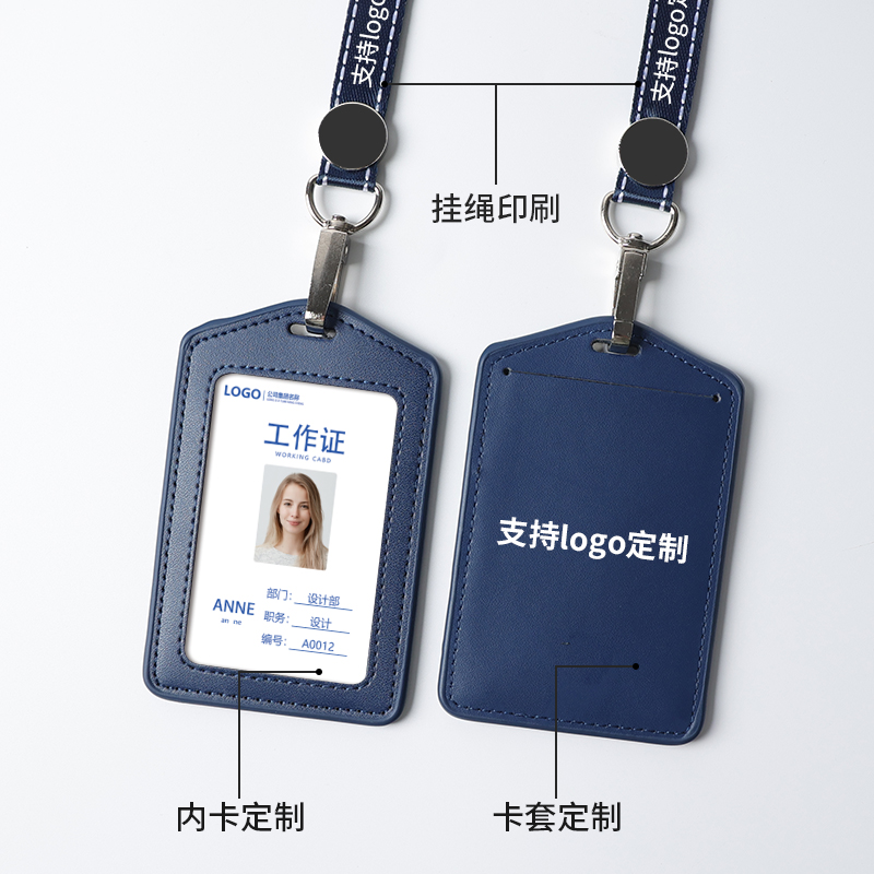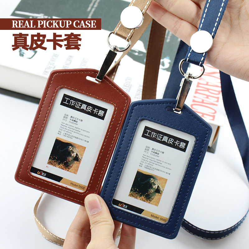 Real leather documents sleeve chest card sleeve door Forbidden Card bus card Factory Card card Document sleeve 1 5cm Two-wire rope hanging work card Chest Card Certificate Work License Plate of Card Work Card Custom-Taobao