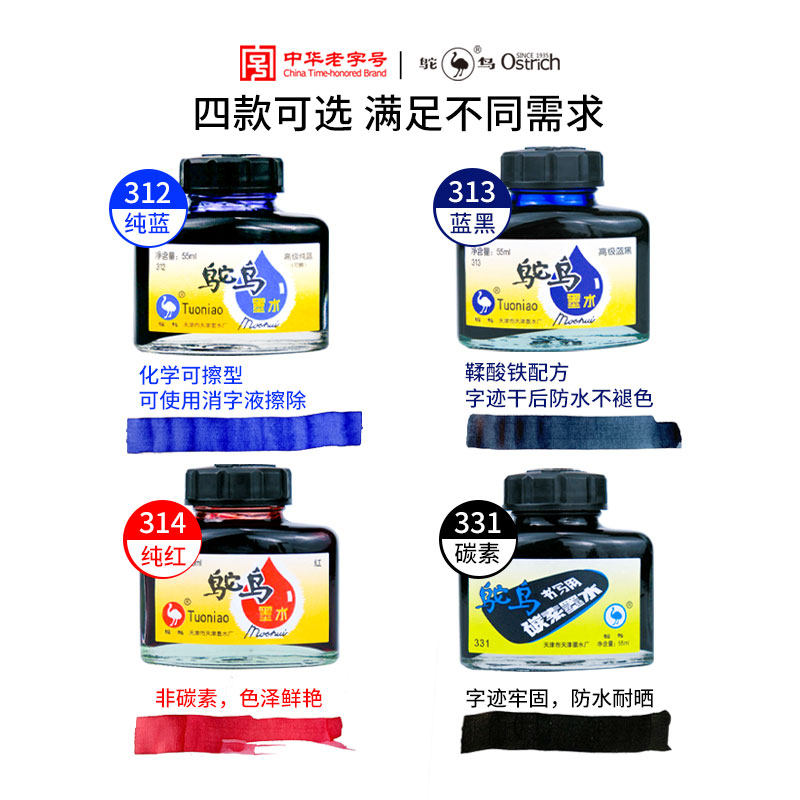 Ostrich ink 3 series blue black red pure blue pen ink carbon waterproof office students practice calligraphy with domestic products