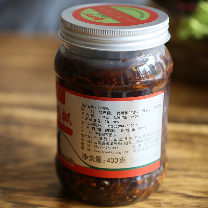 A bottle of Yunnan specialty Yimen mountain fragrant chicken fir mushroom oil drenched chicken fir mushroom edible fungus 400G gift
