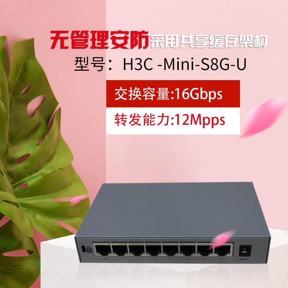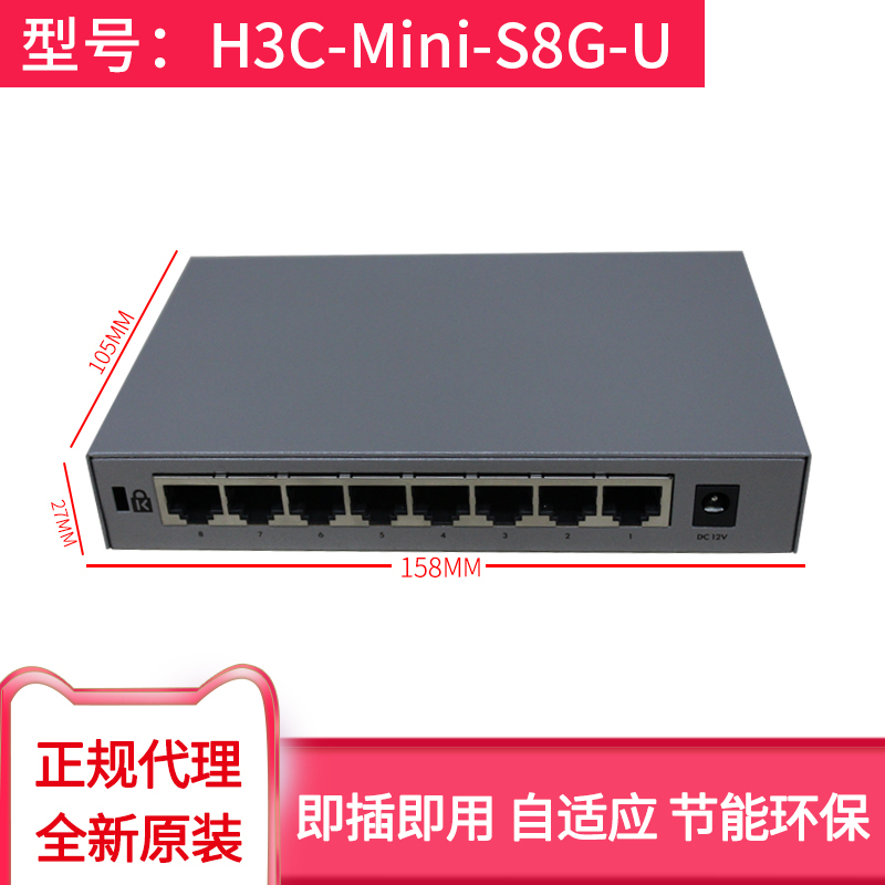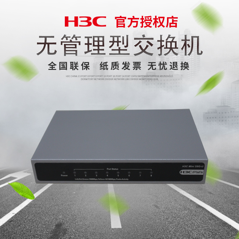 H3C Huazzo S8G-U 8 mouth one thousand trillion Tainet Switch Desktop Iron Shell Mute Lightning Protection Wide Warm Net Road Exchanger Hub Extension Wire Stable No Wire Plug & Play
