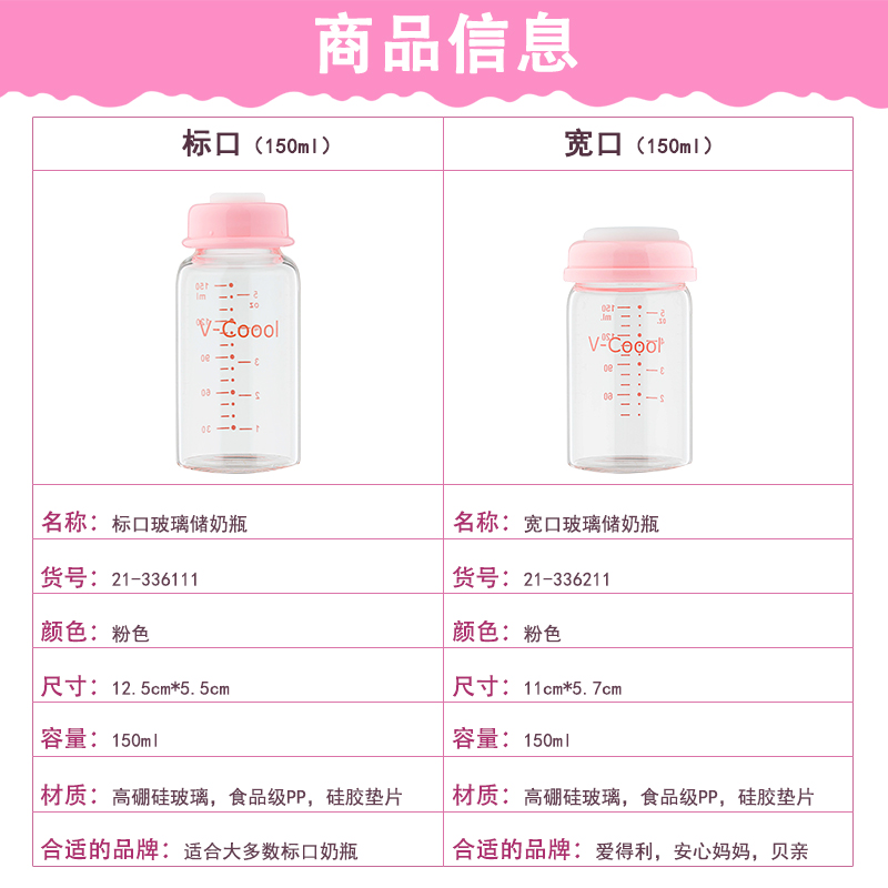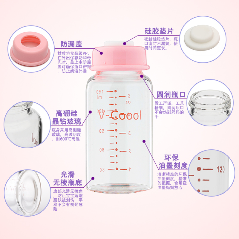V-Coool breast milk storage bottle fresh bottle glass wide diameter Standard diameter Breast milk storage bottle cup bag