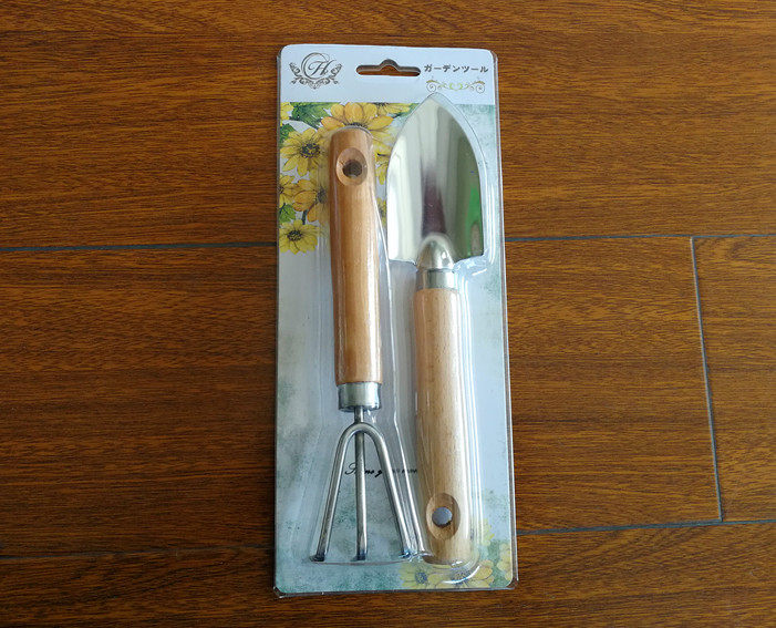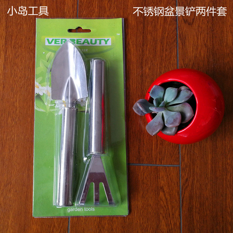 Stainless steel wooden handle connected bonsai gardening shovel set 2 pieces set 3 pieces set of shovel tweezers three-toothed three-paw tool