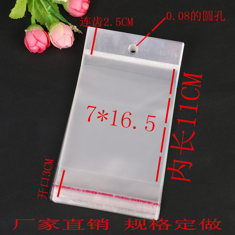 OPP bag chuck bag transparent bag self-adhesive bag hanging hole bag jewelry packaging bag 200 7*16 5
