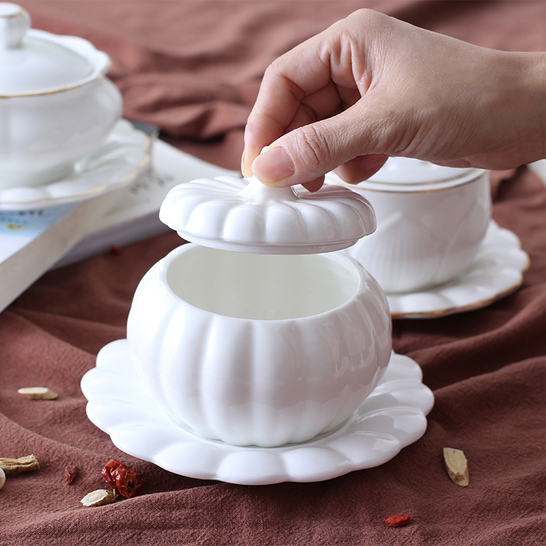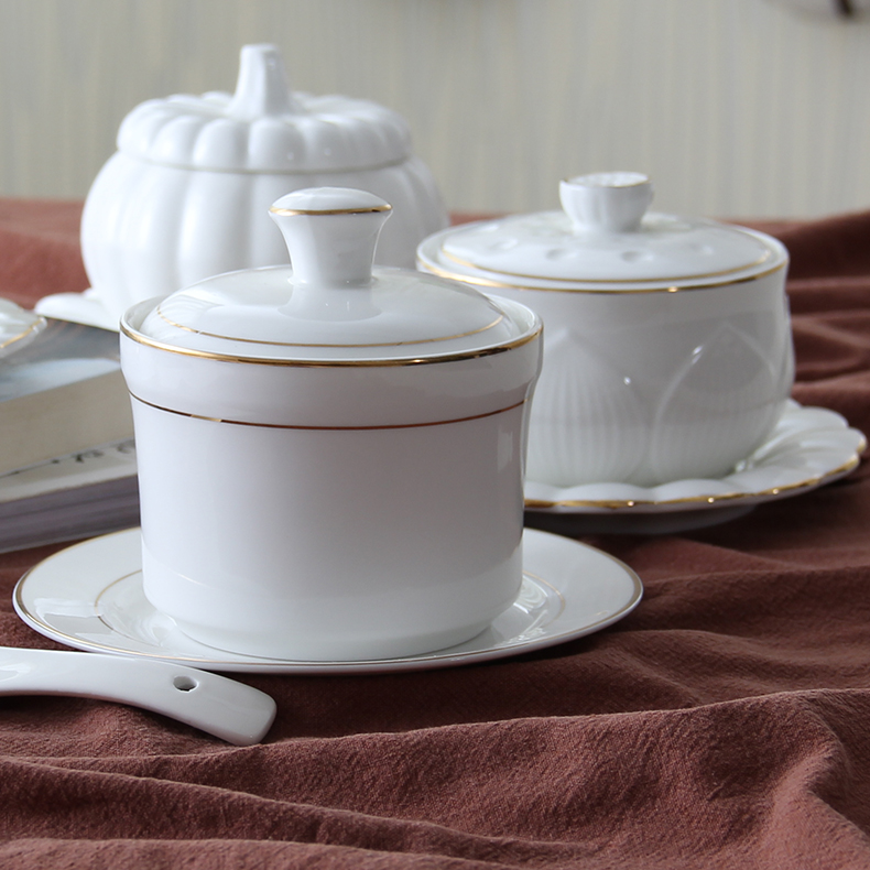 Porcelain gravitates Steamed Chicken Egg Spoon Bowl With Lid Baby Stew Eggs Rinds Flushed ceramic Snow clams Nest Flushed and Steamed Hotel