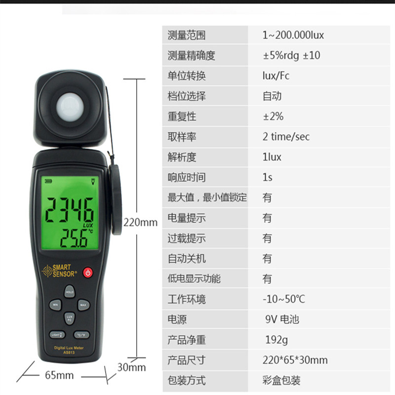 Xima Digital illuminance meter Brightness detection Lumens meter Brightness meter High precision brightness tester AS813