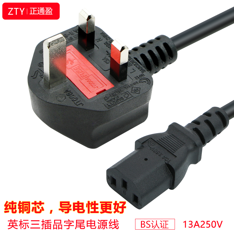 British standard BS certification computer power cord three-hole pure copper high-power 1 5 1 square British standard plug cable