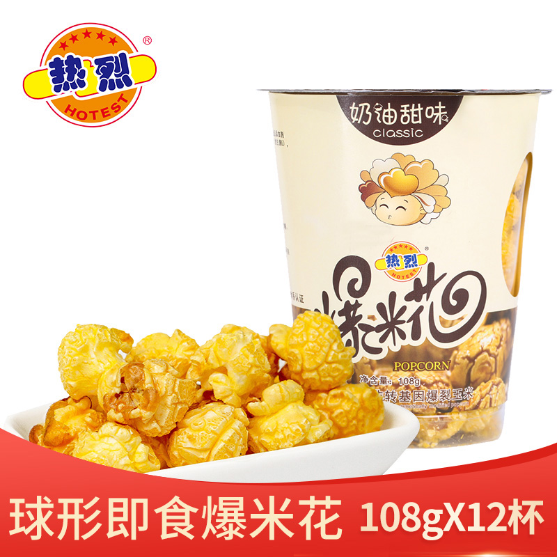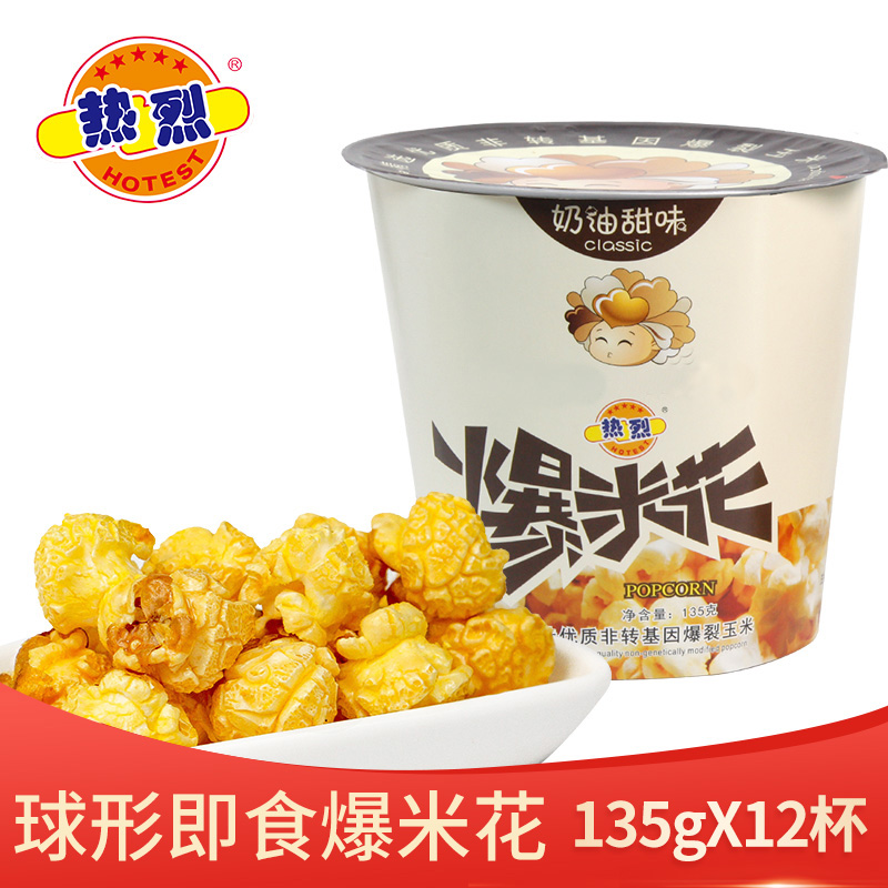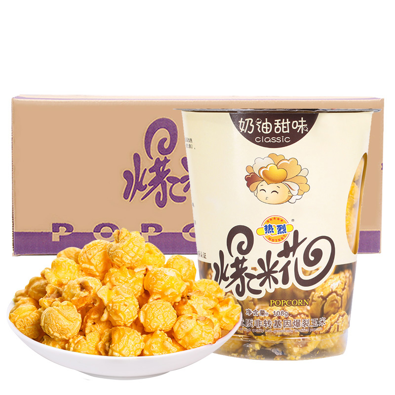 Warm Brand Popcorn Cream Taste Barrel Loaded 12 Cup Whole Box Casual Snacks Popcorn caramel flavor KTV popcorn-Taobao