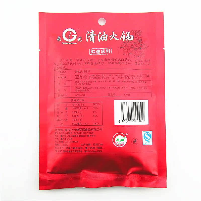 6 bags Chongqing Little swansong Long light clear oil hot pot soup bottom 200g Non-cow oil linen spicy hot pot bottom stock