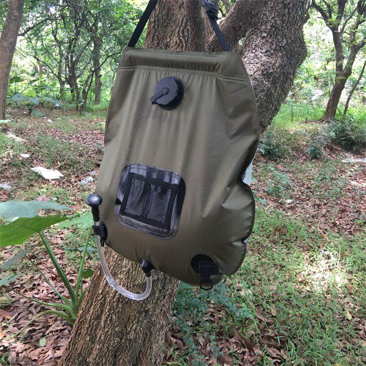 Enhanced version of outdoor solar bath bag camping bath water bag 20L portable water bag shower bag army green