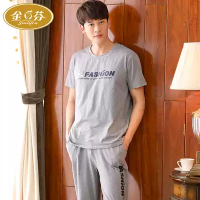 Pajamas men's summer cotton short-sleeved trousers cotton plus size thin sports spring and summer home wear suit can be worn outside