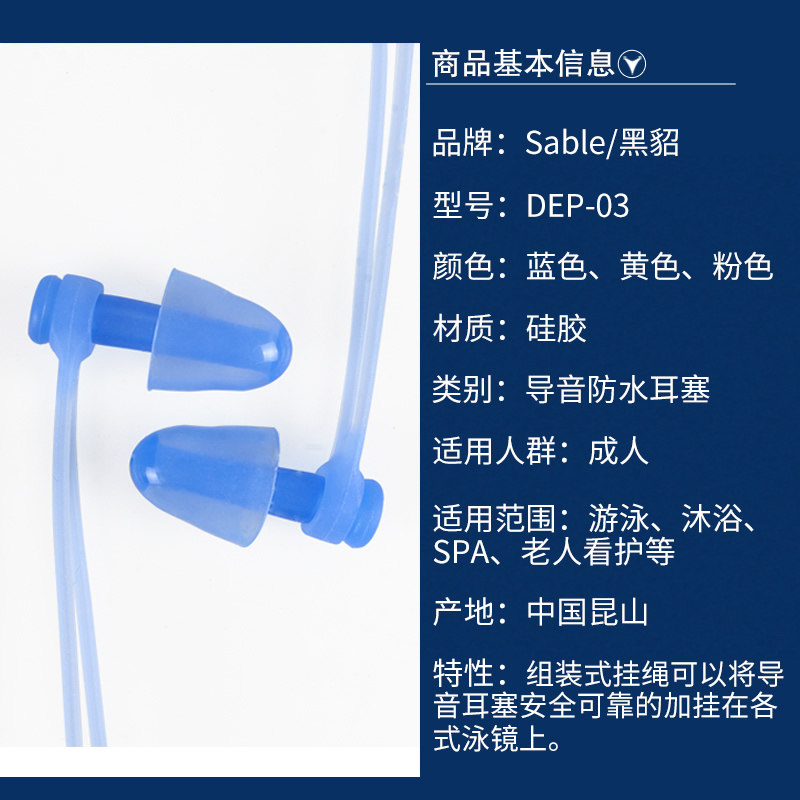 Sable swimming earplugs adult waterproof silicone belt rope bath diving equipment men and women anti-ear ear water noise