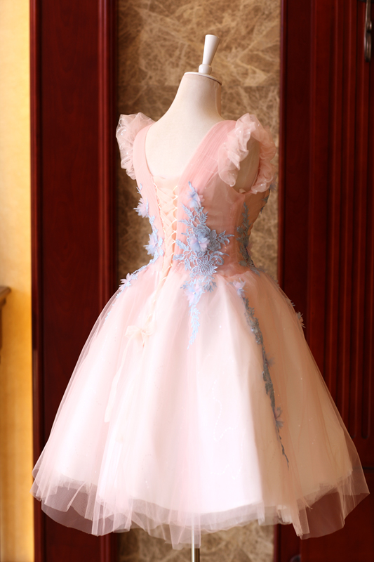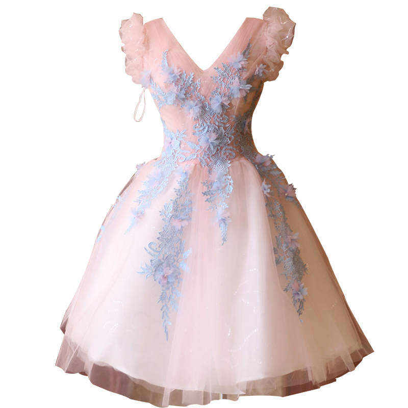 Soft pink bride married toast bride short birthday party wedding dress 9719Q