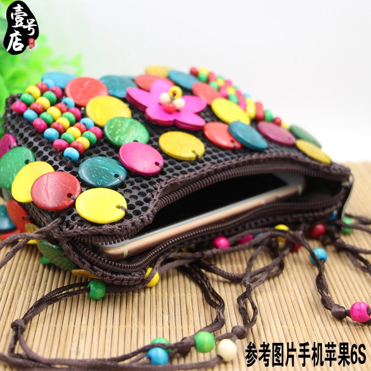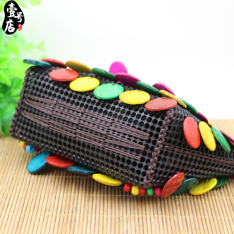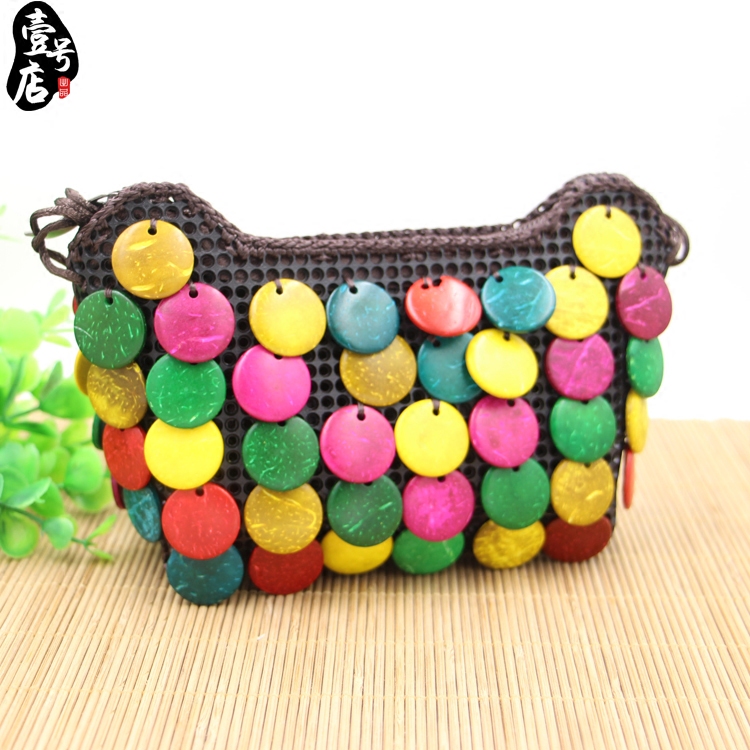 () Hainan Yuan Bao coconut shell handbag children adult single shoulder zero wallet woven bag ethnic wind 4 colors