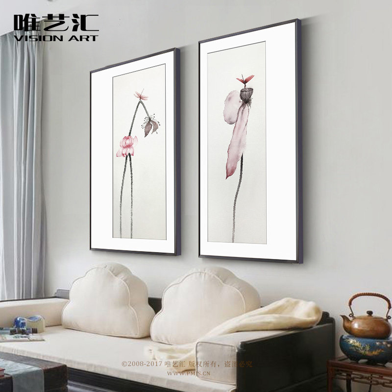 Modern new Chinese ink triple Lotus oil painting living room decoration painting sofa background wall mural dining room hanging painting
