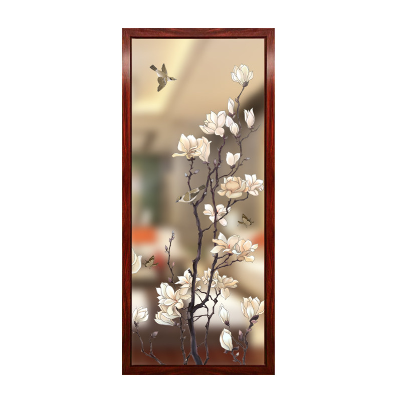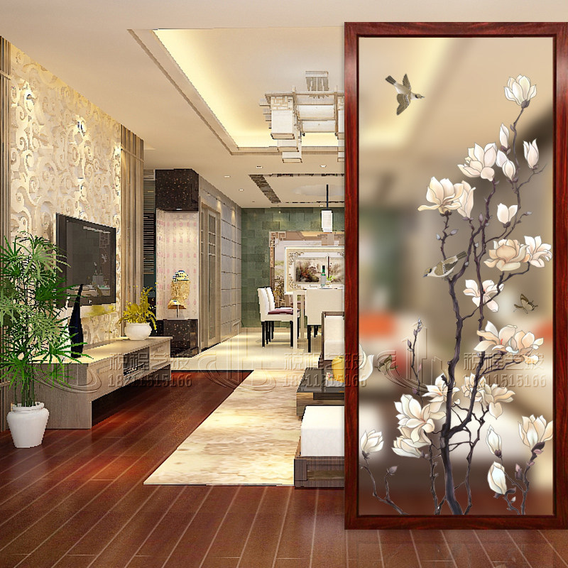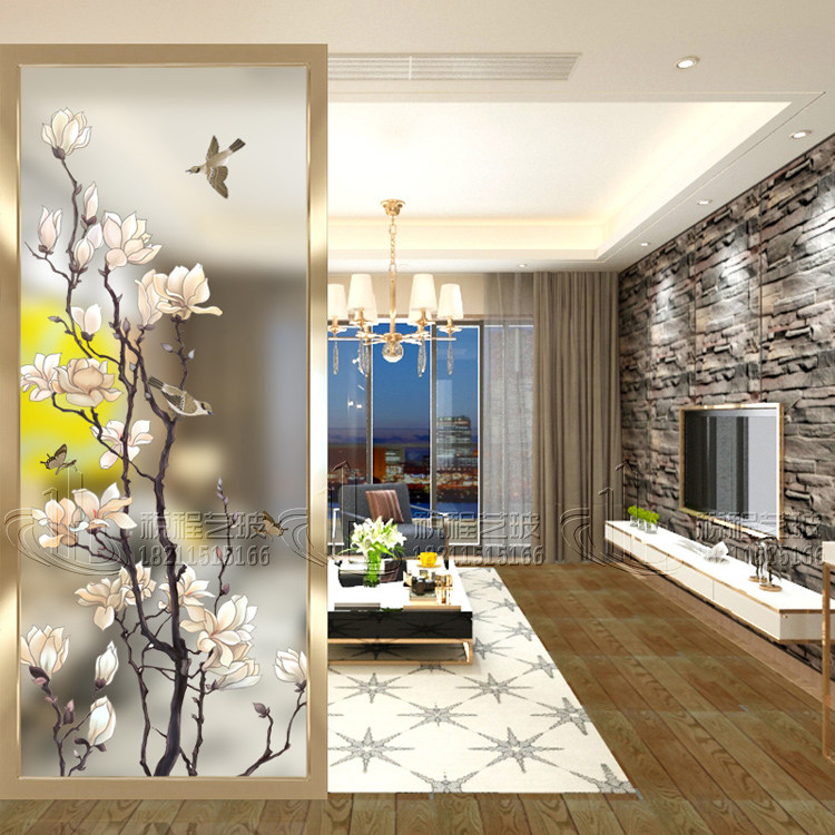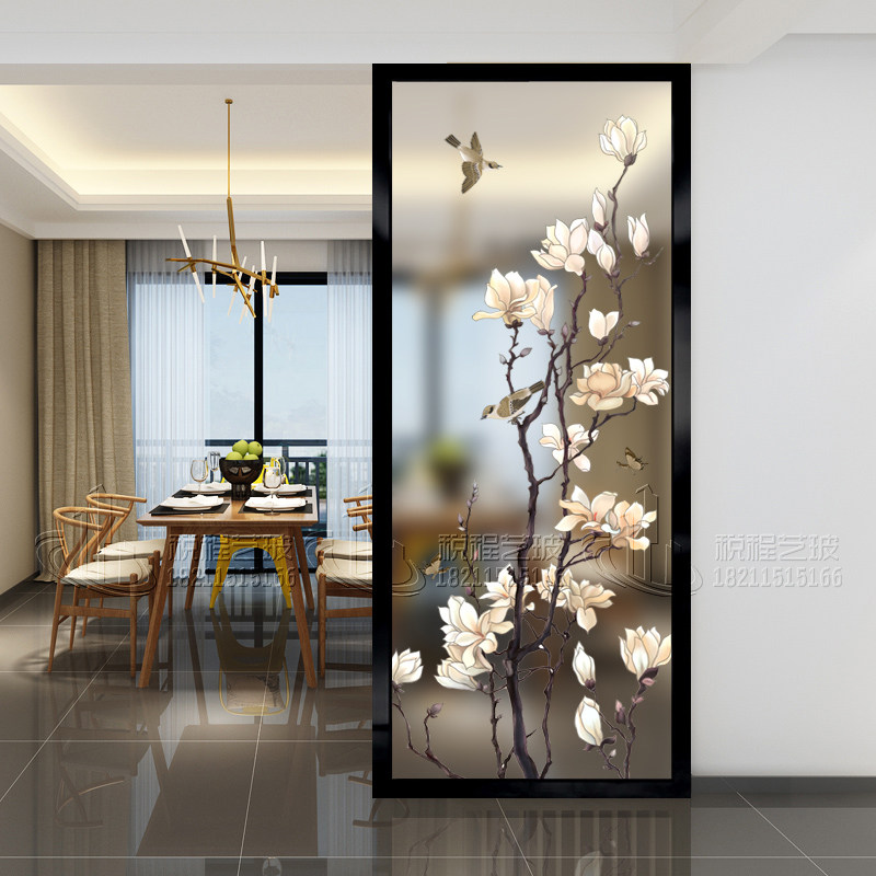 Modern minimalist art glass transparent screen Tempered frosted entrance aisle partition double-sided translucent process flowers and birds