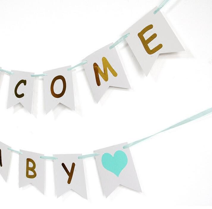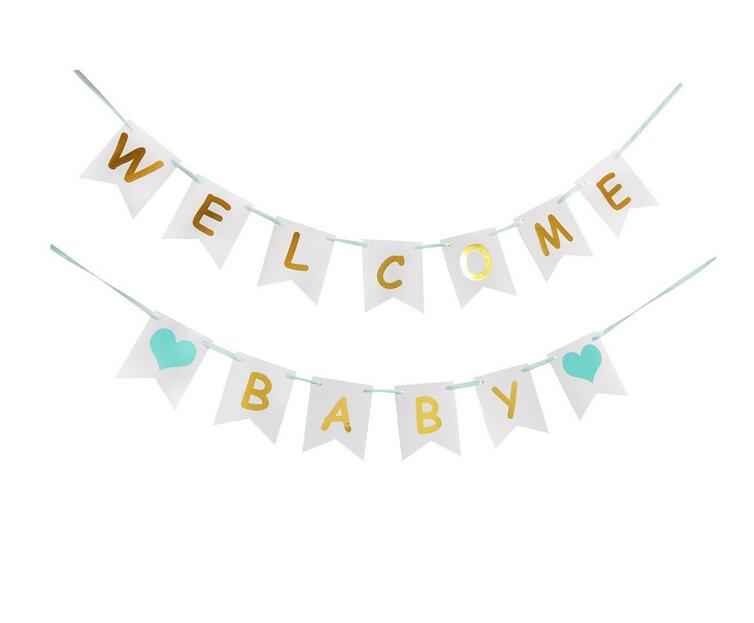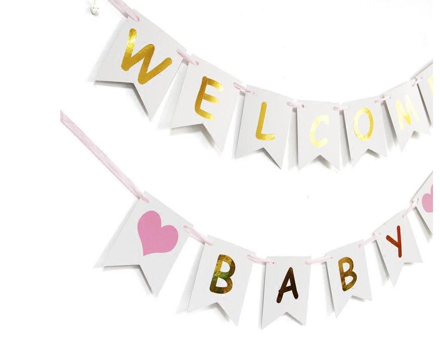 Super cute WELCOME BABY letter pull flower Baby shower pull flag baby birthday decoration color strip