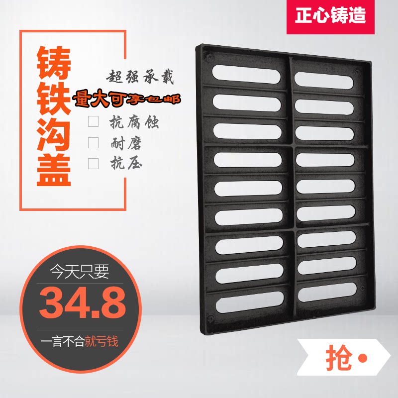 Manufacturer direct selling ductile iron ductile gutters cover sewer rain sewage grate manhole cover 200 * 400 * 30B125